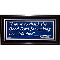 Steiner Sports 2007119552200JD legendary quote, "I want to thank the Good Lord for making me a Yankee." This framed sign, which commemorates that quote, measures 12x36 and is a Yankees-Steiner exclusive. Joe DiMaggio was known to millions as "Joltin' Joe" or the "Yankee Clipper," but more to the point he was one of the best players to ever grace the game of baseball Authentic Collectible from your favorite team. Replica sign from Yankee Stadium ...